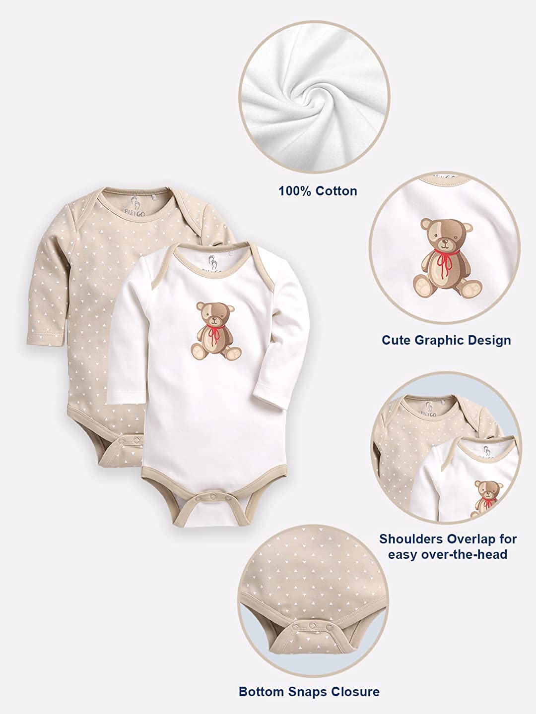 BABY GO Baby Unisex Romper for All Season/Sleep Suit/Comfort fit/ 100% Cotton (Set of 2) 0 - 3 Months