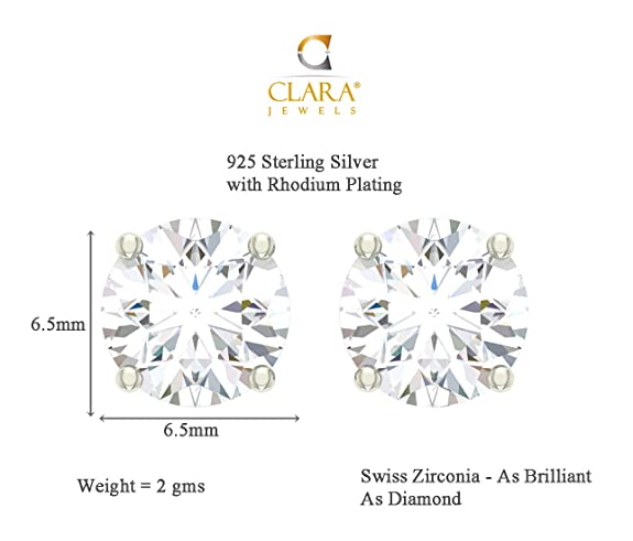 CLARA 925 Sterling Silver Rhodium Plated 5 Stone Pendant Earring Necklace Set with Chain Gift for Women and Girls