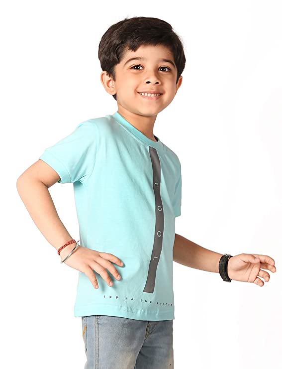 Cuteiz Fashion Blue Graphic Printed Cotton Round Neck Half Sleeve Tshirt for Boys