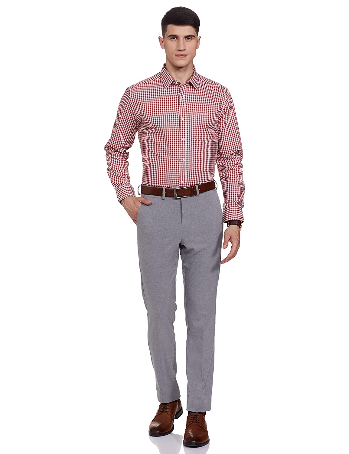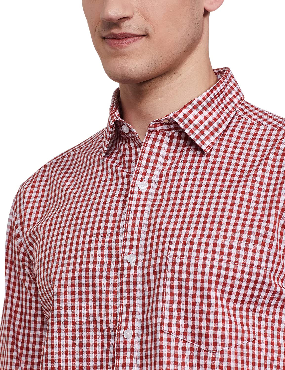 Features spread collar, long sleeves with button cuff, button placket, straight hemline and a patch pocket at the chest. Pattern - Checkered Formal Shirt