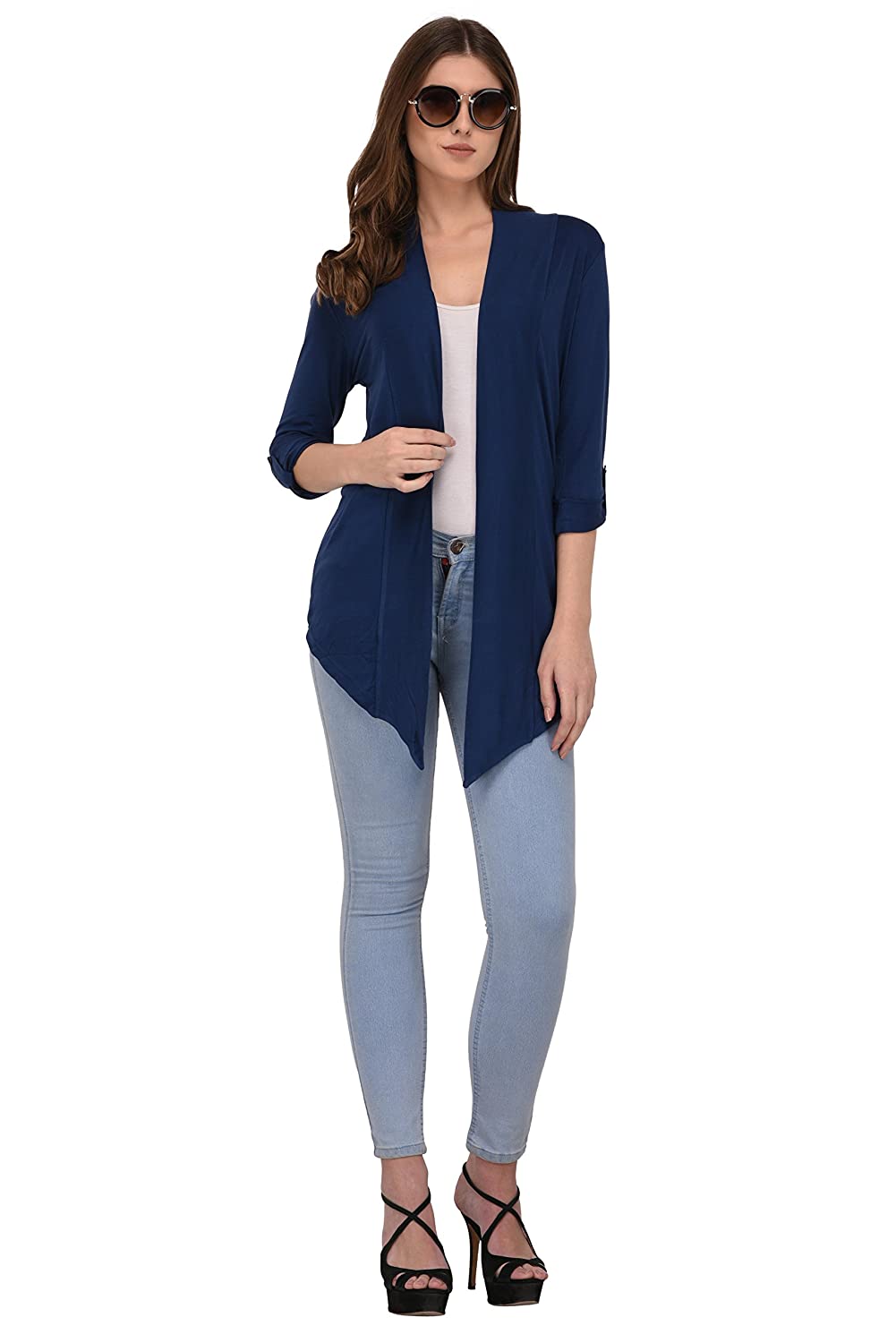 ESPRESSO Women's 100% Viscose Waterfall Shrugs with Button Foldable Sleeve