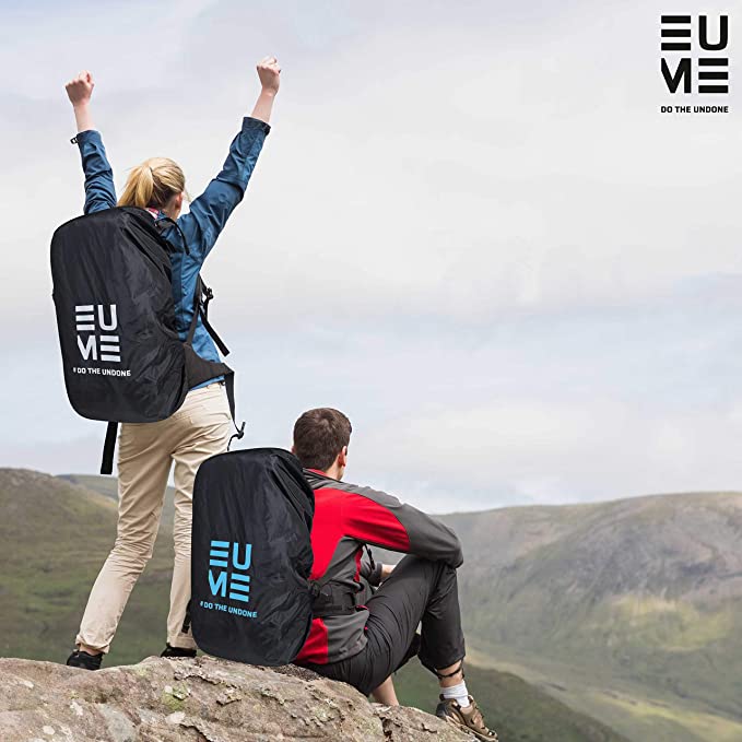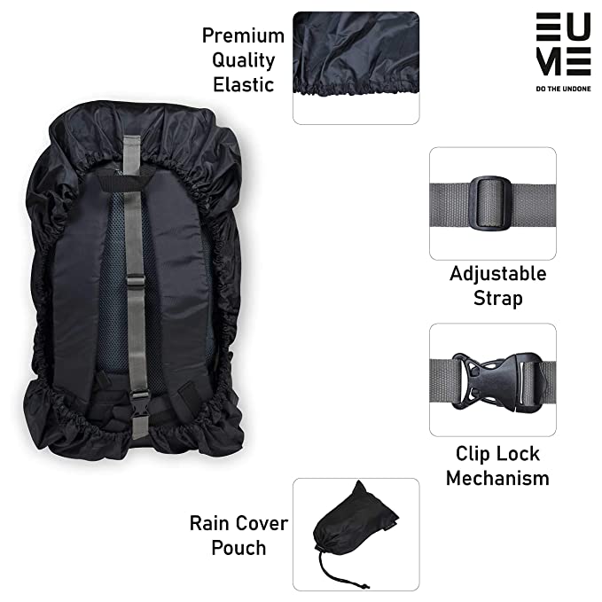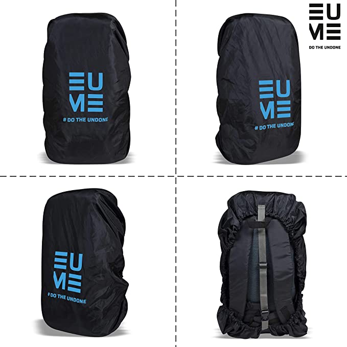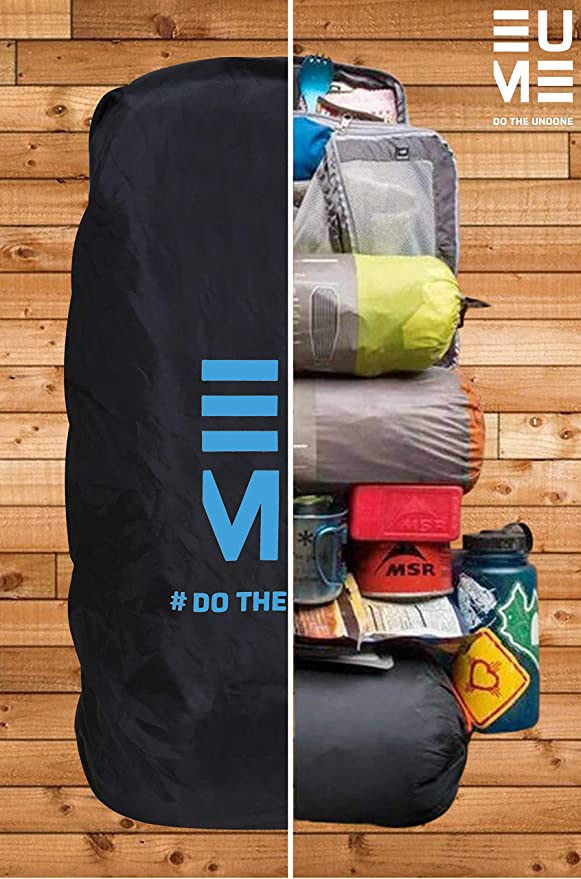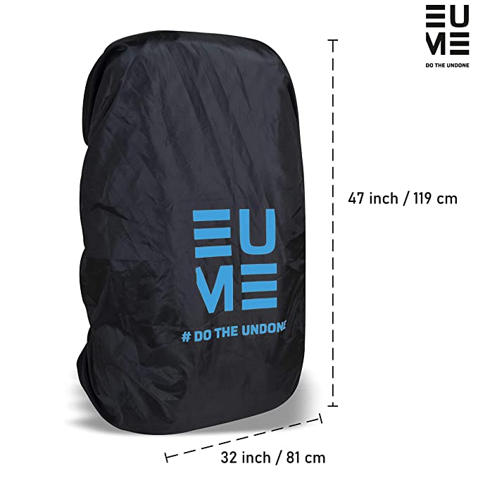 Eume Polyester 65 LTR Rain and Dust Cover for Trekking and Rucksack Bag (Black & Blue)