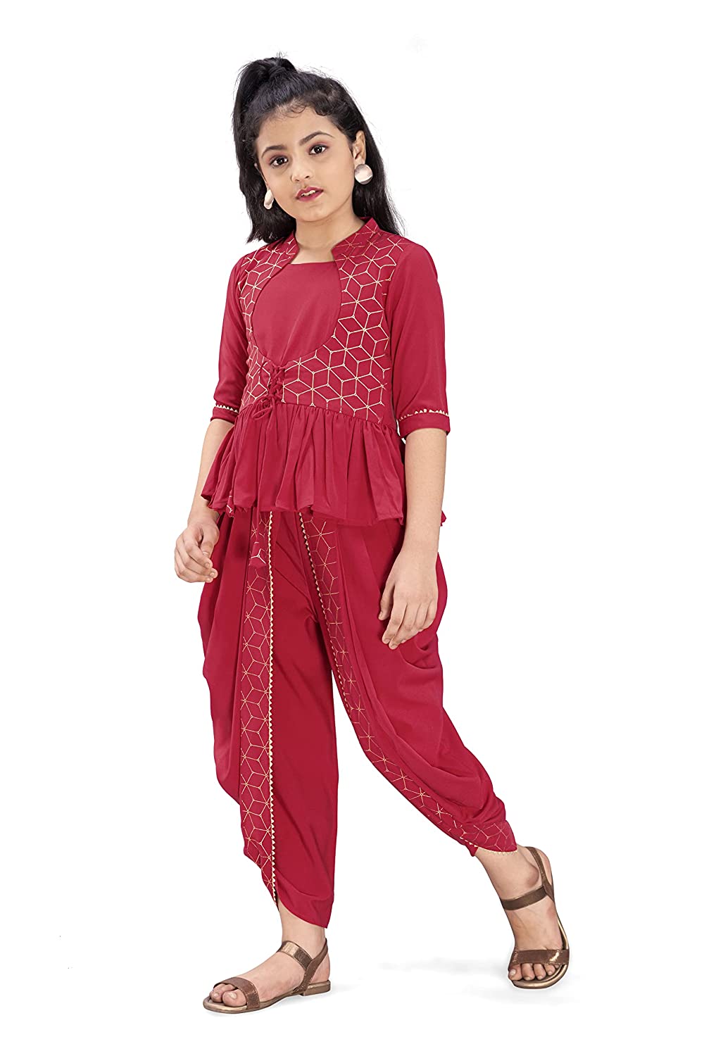 Fashion Dream Girl's Crepe Top With Dhoti Pants