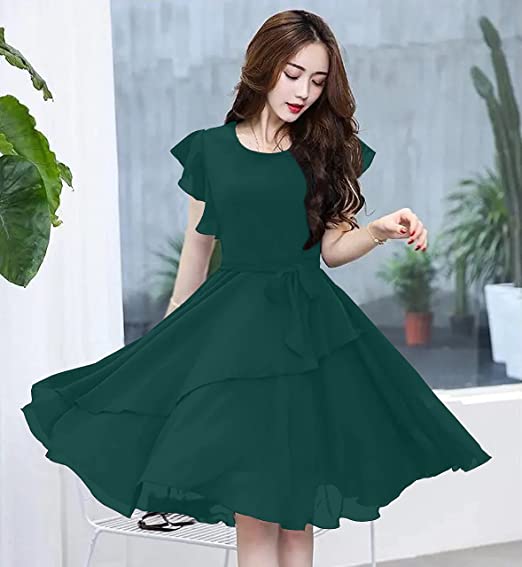 GG Fashion Women's Fit and Double Flare Knee Length Dress