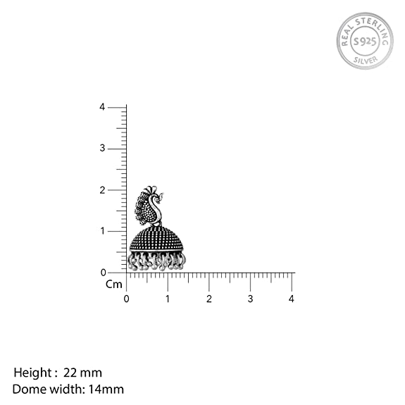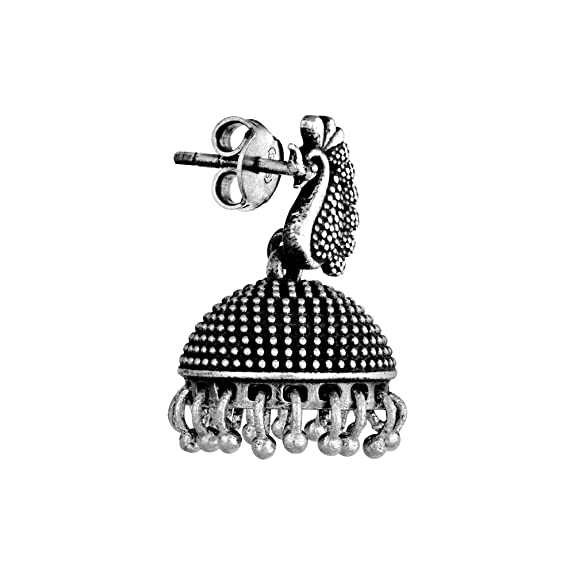 GIVA 925 Sterling Silver Oxidised Silver Peacock Jhumka Earrings | Earrings to Gift Women & Girls | With Certificate of Authenticity and 925 Stamp