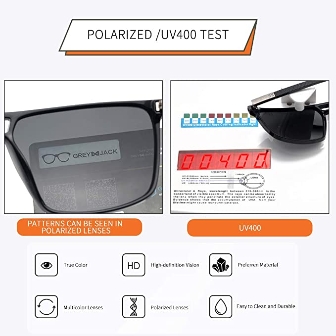 【Polarized UV Protected】- Polarized sunglasses against harmful UVA/UVB rays and reduce glare reflected off of roads, bodies of water, snow, and other horizontal surfaces. Restore true color, eliminate reflected light and scattered light and protect eyes perfectly.