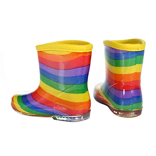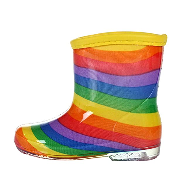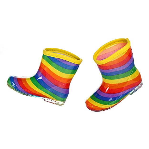 Hopscotch Boys and Girls PVC Color Stripes Rain Boots in Multi Color