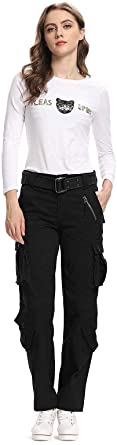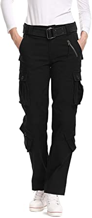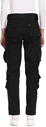 Women Cargo Pants with Pockets:Womens work pants features 8 Pockets include (2) front hand pockets; (2) buttoned cargo pockets; (2) leg pockets; (2) buttoned rear pockets. Plus one left front zipper fake pocket which is a good decoration