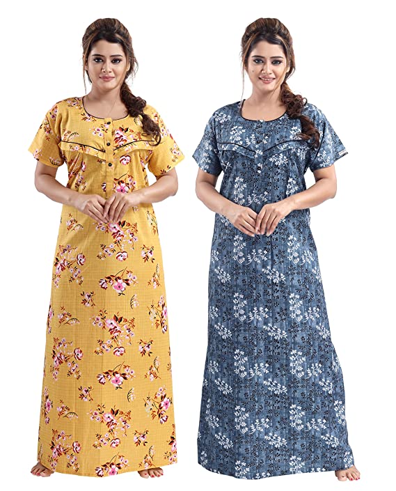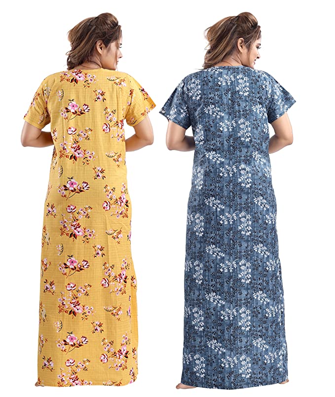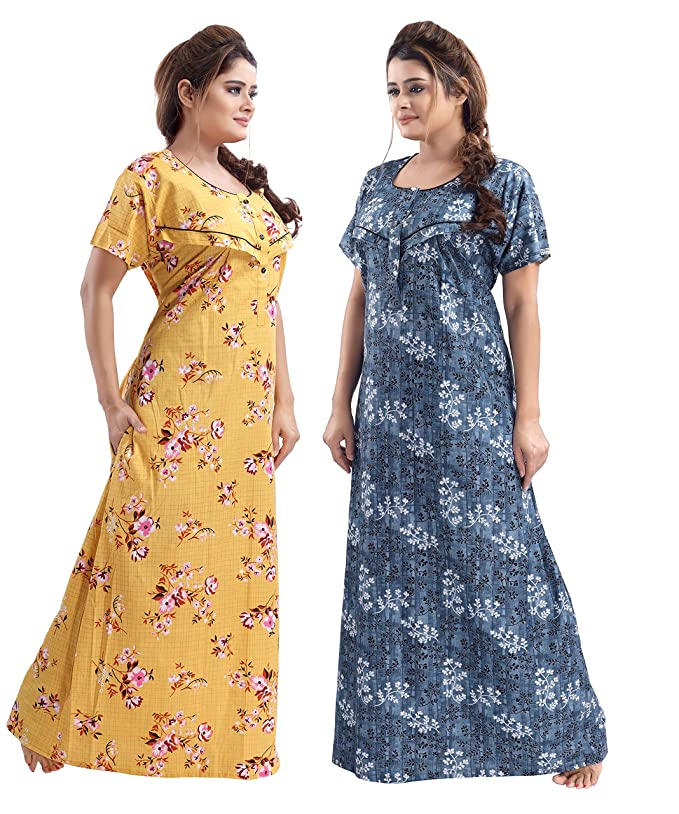 Momley Women's Maternity / Feeding Cotton Fabric Nightgown / Nightie with pocket ( Pack of 2)