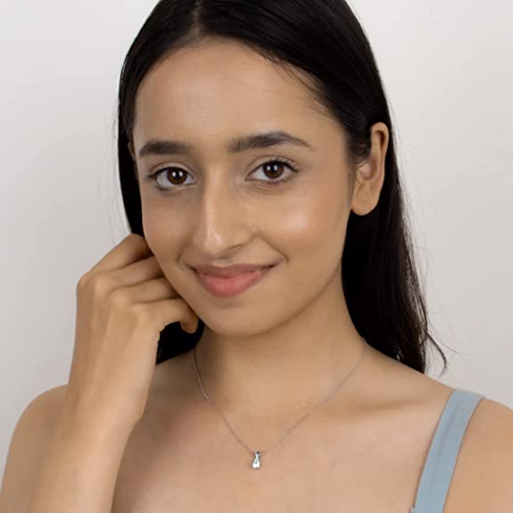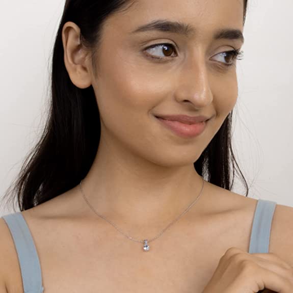 Ornate Jewels Pure 925 Sterling Silver Round American Diamond 18" Chain Solitaire Pendant for Women & Girls With Certificate of Authenticity & Hallmark
