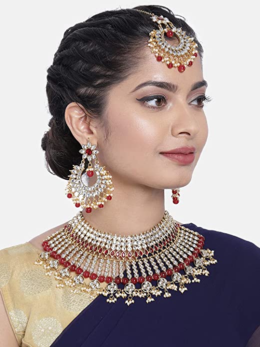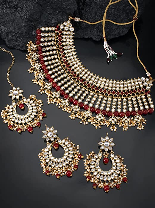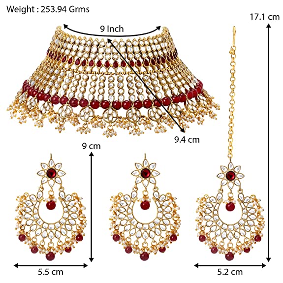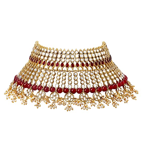 Peora Gold Plated Kundan Choker Necklace Bridal Jewellery Set for Women