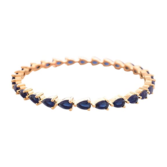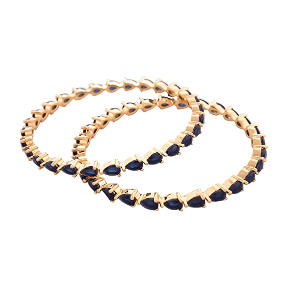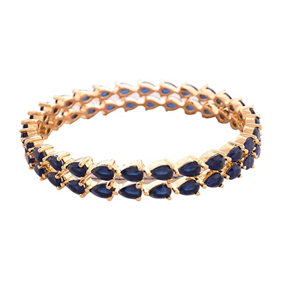 Ratnavali jewels American Diamond Studded Gold Plated Traditional Sapphire Blue Pear Shape CZ/Diamond Bangles for Women/Girls RV2648B