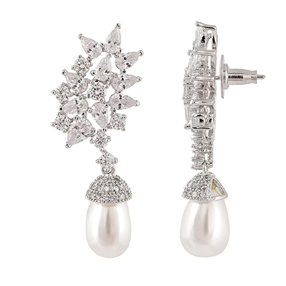 Ratnavali Jewels Fashion Jewellery Silver Plated Red Green American Diamond CZ Pearl Dangle & Drop Earrings Women/Girls