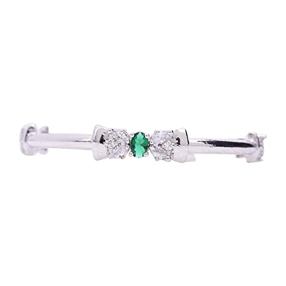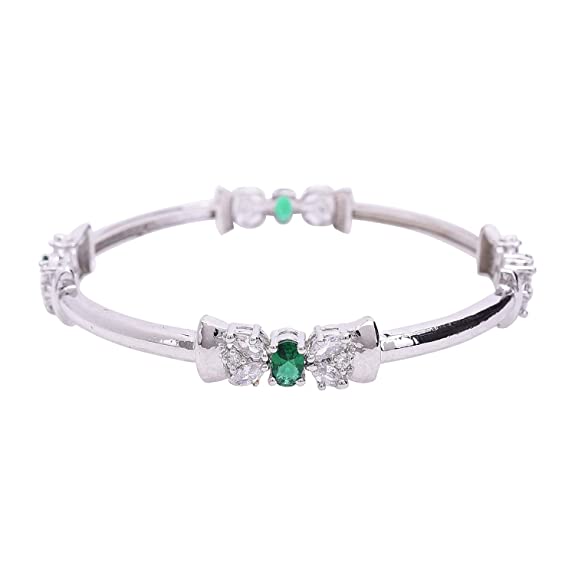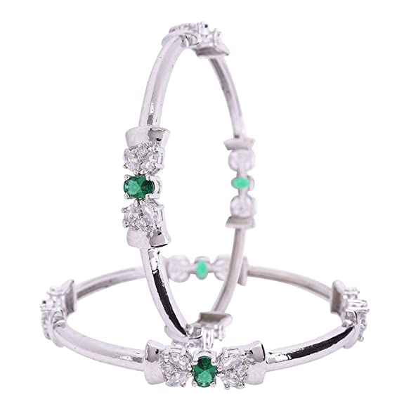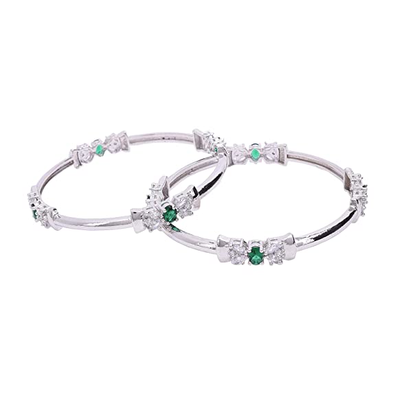 Ratnavali Jewels Silver Plated Green White AAA CZ American Diamond Bangle Bracelet for Women Girls Party 4023G-W
