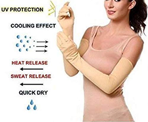 Shoppyana Men's and Women's Cotton Hand Summer Gloves for Protection From Sun Burn/Heat/Pollution (Beige, Free Size)