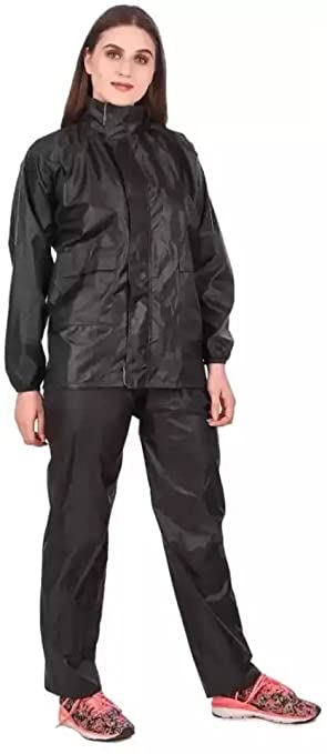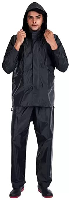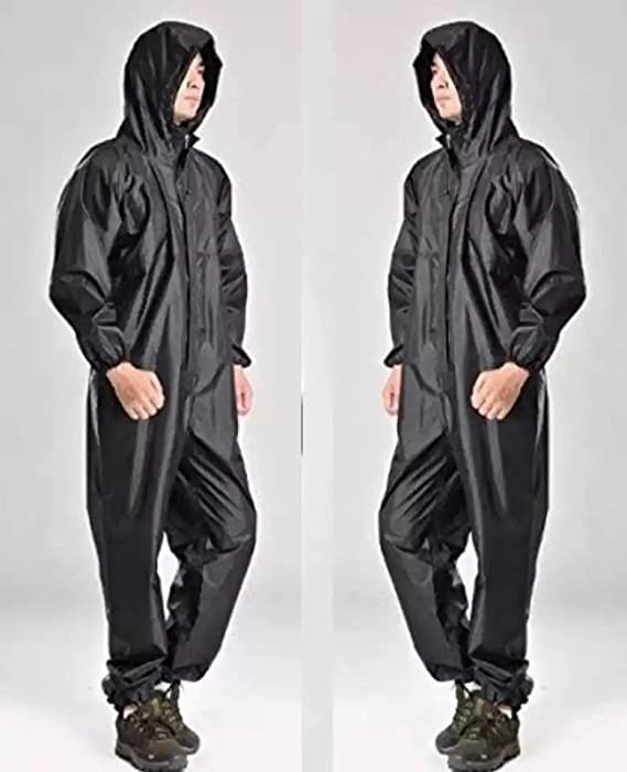 SYHAAR FASHION Unisex Waterproof Top and Bottom Rain Coat for Men Women with Polyster Material (Black,X-large)